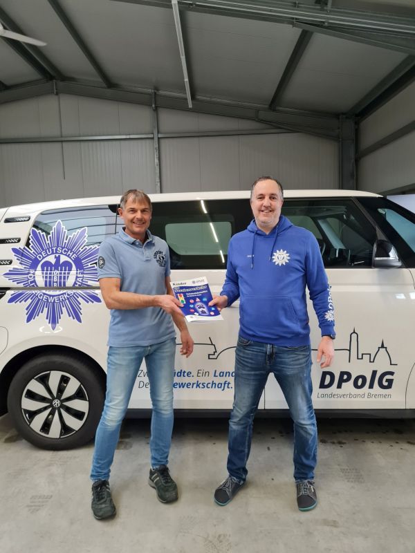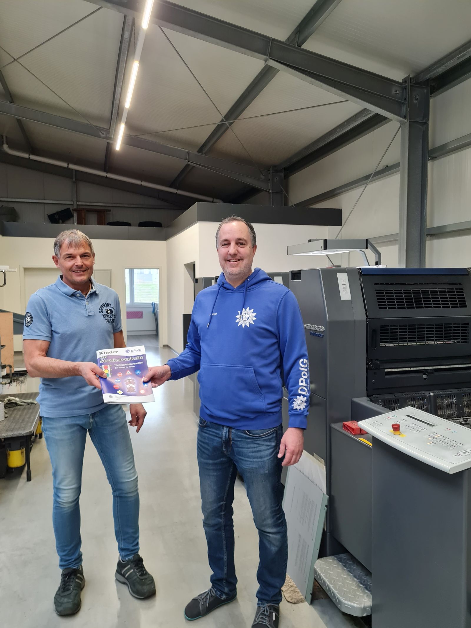Kurz vor den Feiertagen besucht Andre Gudel, 1. Stv. Vorsitzender der DPOlG Bremen die Firma Kleerbaum Druck in Dülmen. Genau dort wird ‚Kinder im Straßenverkehr‘ seit Jahren gedruckt und zusammengetragen. Inhaber und Drucker Thomas Kleerbaum zeigt Andre Gudel persönlich wo und wie genau die beliebten Malbücher entstehen. Nach einer kleinen Tour durch den Betrieb wird gleich die aktuelle Auflage für die KiTa’s und Grundschulen in Bremerhaven in den gewerkschaftseigenen ID-Buzz verladen. So kann der Verkehrsunterricht nach den Ferien in der Hafenstadt direkt losgehen.
